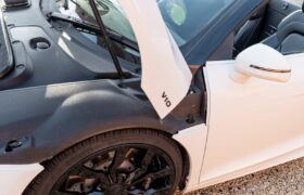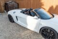 We are proud to present this former Audi UK press car, notable for its appearance on Top Gear. This manual R8 has been tastefully modified with a black trim overhaul, to complement the white paintwork. The Audi R8 Spyder Quattro V10 offers a golden opportunity for you to experience the exhilarating supercar experience without the nightmares, and it comes with full service history and 11 months MOT.