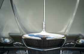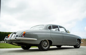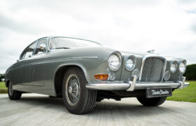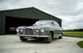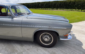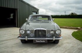 The Mark X was first unveiled at the London Motor Show in October 1961, seven months after the E-Type. It was considered thoroughly modern for its time, offering monocoque construction, a DOHC engine, four-wheel disc brakes and sophisticated fully independent suspension. This example is the later model which received mechanical updates including variable-ratio steering and a 4,235CC engine, known as the 4.2 offering a useful increase in torque. Even as an automatic, the Mark X had a top speed of 120 mph and could outrun a Triumph TR4.